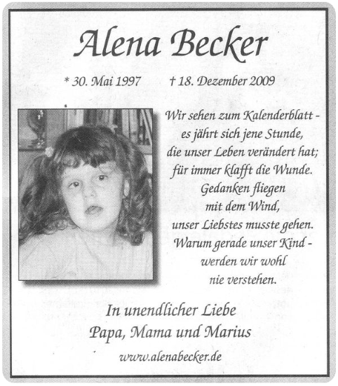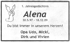 Ein Jahr...wenn man sich vorgenommen hat, sein Kind niemals allein zu lassen ist ein Jahr ohne Alena eine unvorstellbar lange Zeit.